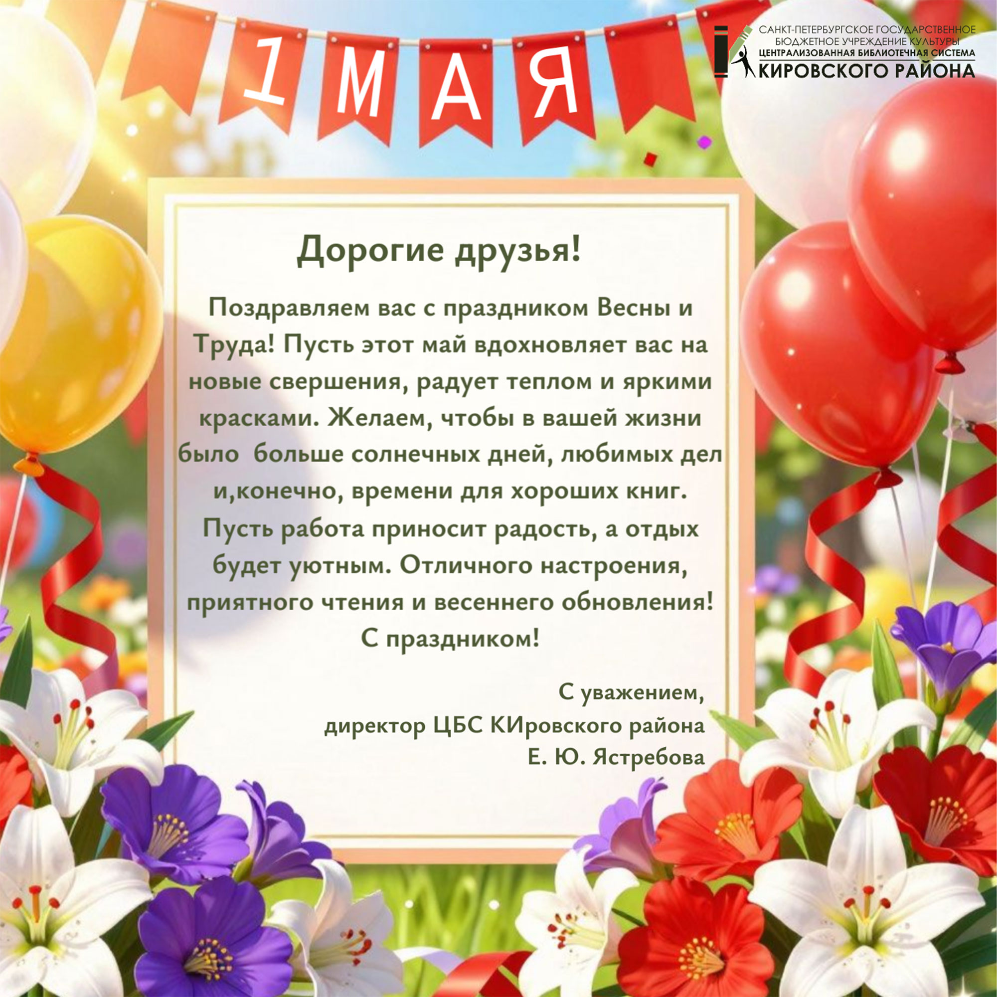 Поздравляем с Праздником Весны и Труда! Главная - Новости - Поздравляем с Праздником Весны и Труда! 30.04.2026 Фотогалерея Поделитесь: