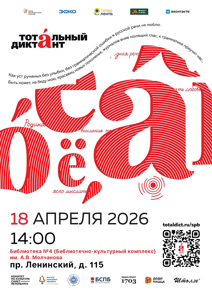 В этом году библиотека присоединяется к ежегодной просветительской акции - Тотальному диктанту, который состоится 18 апреля в 14.00 по адресу: Ленинский пр., д. 115.